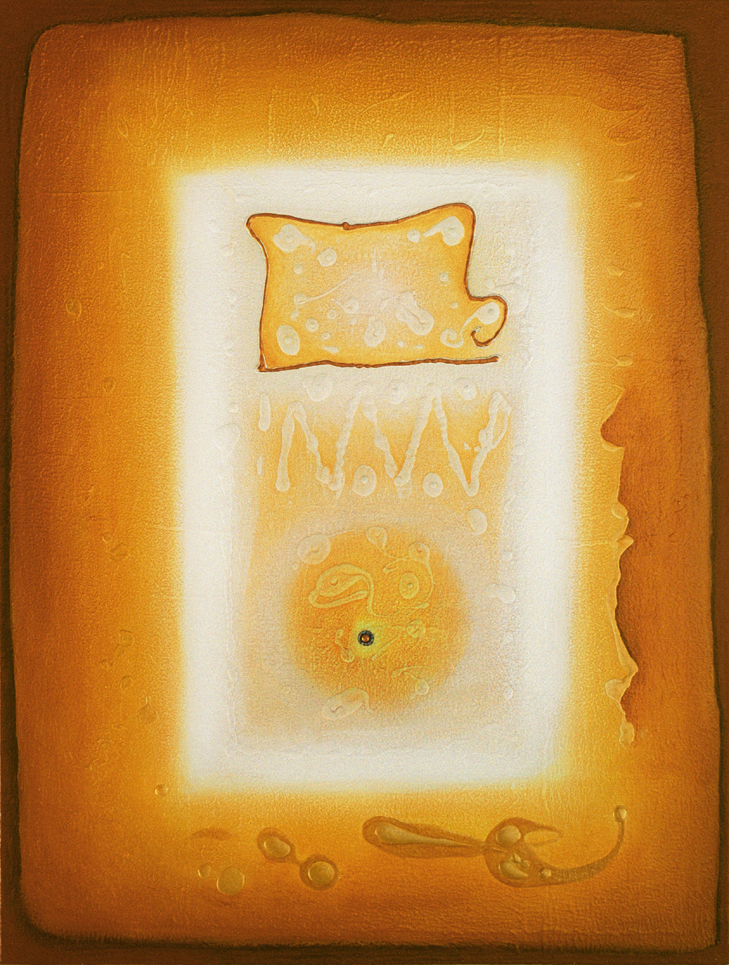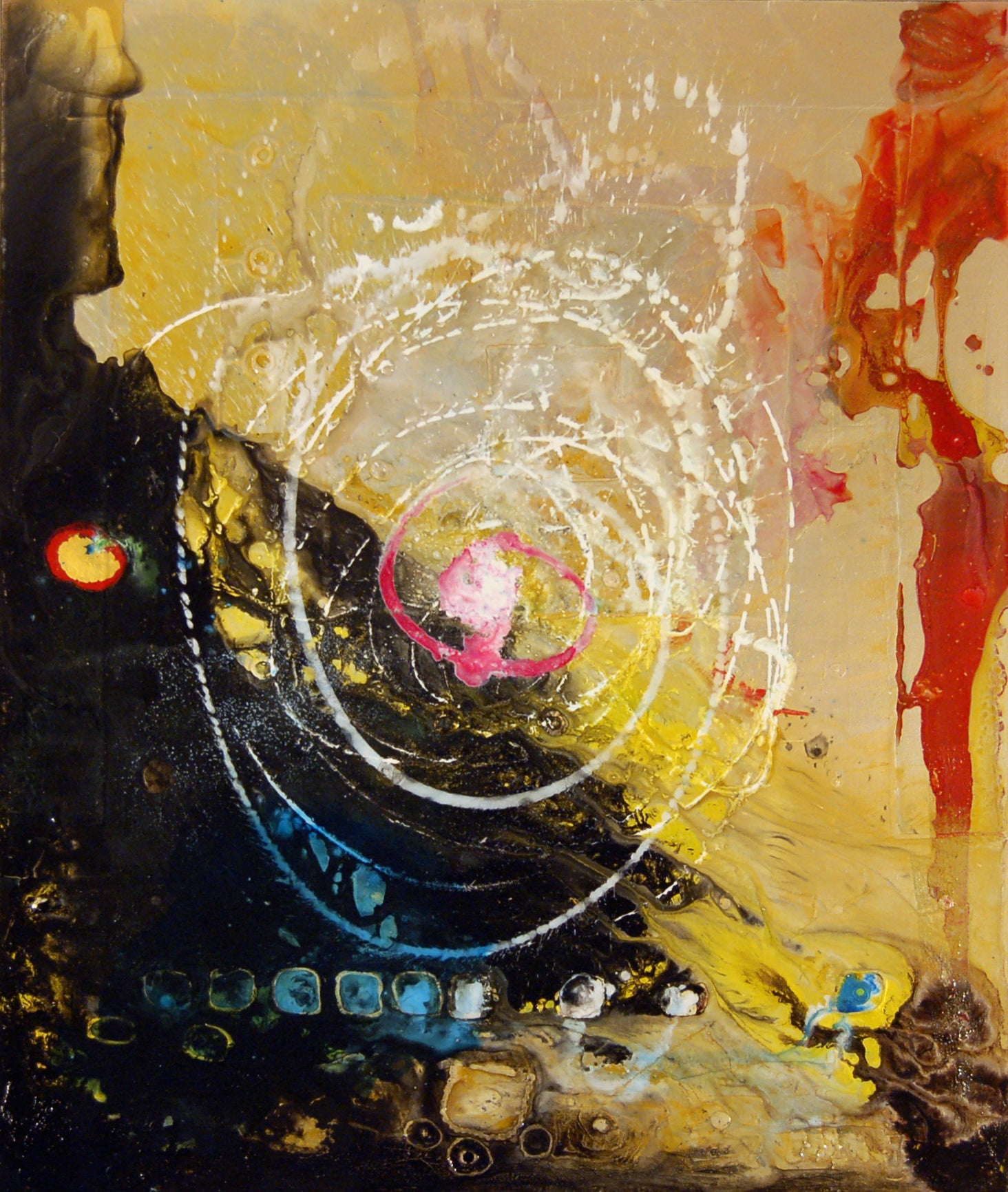 Working in photography, digital media, and, most prominently, acrylic paint, he has deployed symbolist imagery and motifs culled from myth, geometry, and the collective unconscious, all in the search to visually approximate the inapproximable.